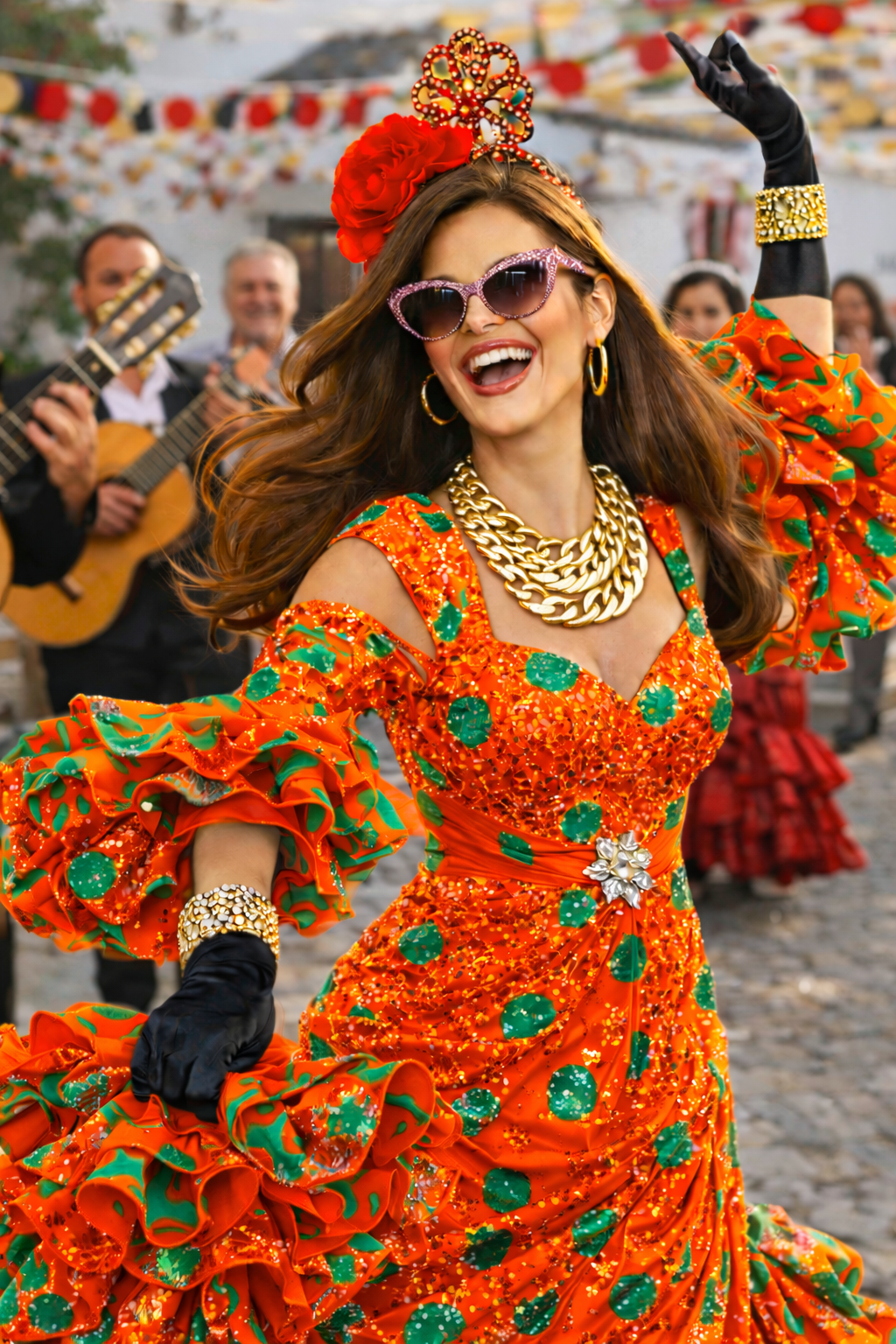 Por eso el movimiento no se mide ni se corrige: se exagera a propósito. Brazos abiertos del todo, manos sueltas, cabeza ladeada, caderas marcando de más y risa escandalosa, de esas que llenan la sala antes que el cuerpo. Como Carmen Sevilla, pero con la tranquilidad de quien sabe exactamente lo que está haciendo 🤣🤣🤣🤣🤣🤣.