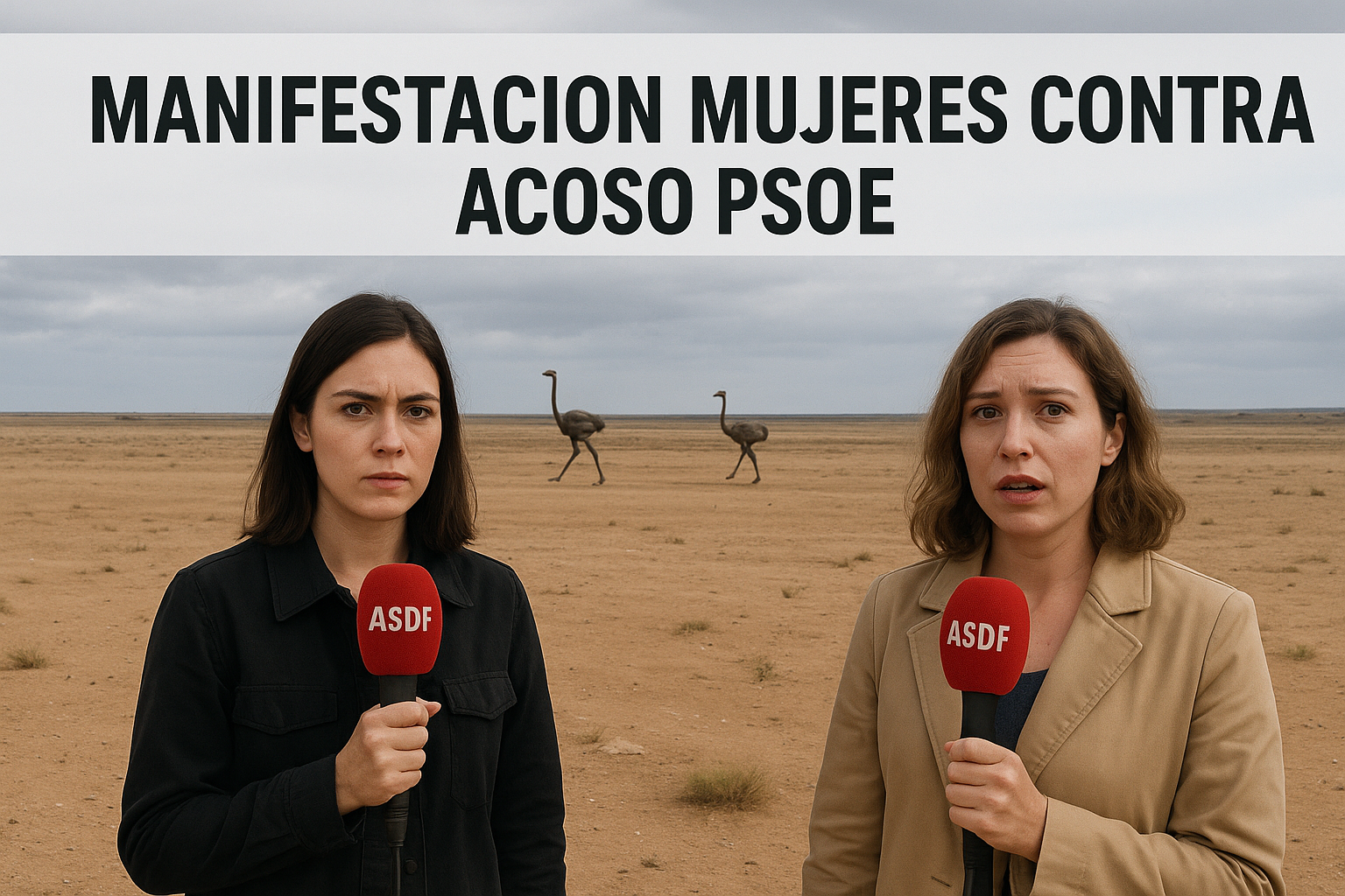 Madrid. A primera hora de la mañana, dos reporteras del Diario ASDF fueron enviadas a cubrir lo que, según la convocatoria difundida en redes, iba a ser una manifestación multitudinaria de mujeres contra todas las acusaciones de acoso sexual que cercan al PSOE. El objetivo era informar con rigor, libreta en mano y micrófono con espuma corporativa, sobre una protesta que prometía llenar plazas, avenidas y, si se terciaba, rotondas estratégicas. Lo que encontraron, sin embargo, fue un descampado desértico, un viento con vocación poética y varios estepircursores dando vueltas en círculos, como si también ellos estuvieran buscando a alguien.
