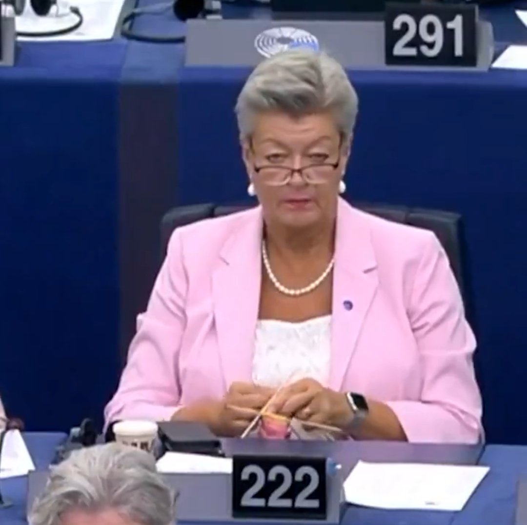 ESTRASBURGO, EUtopía—Un giro de acontecimientos que ha dejado a los líderes mundiales temblando y a las tiendas de lana de Europa sin existencias ha sacudido los cimientos de la Unión Europea: la comisionada de Asuntos Internos, Ylva Johansson, ha desatado una nueva forma de gobernanza revolucionaria: la tejerocracia. Durante el reciente discurso sobre el Estado de la Unión de Ursula von der Leyen el miércoles, Johansson fue pillada con las manos en la masa—o mejor dicho, con las agujas en acción—tejiendo frenéticamente lo que, según fuentes, podría ser un suéter acogedor para la crisis migratoria o una bufanda para estrangular la burocracia interminable de la UE.