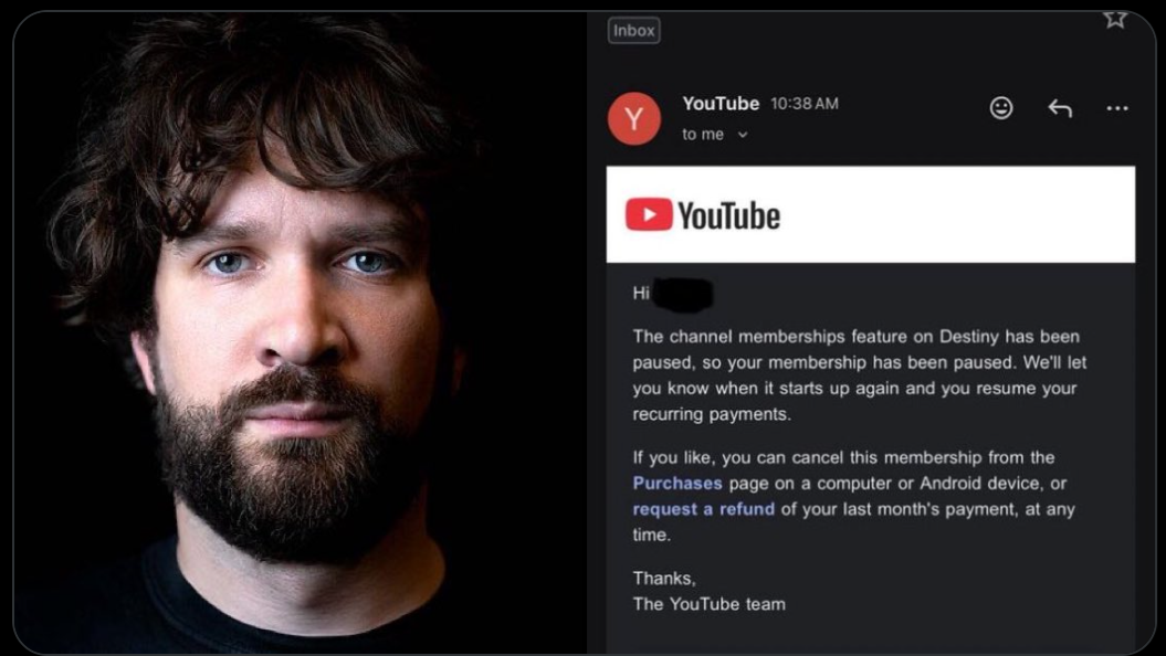 YouTube tomó la drástica decisión de demonetizar el canal del streamer y comentarista político Steven Kenneth Bonnell II, conocido como Destiny, suspendiendo además las membresías de sus seguidores. Esta medida, reflejada en el post de @AFpost en X que incluye imágenes de Destiny, el logotipo de YouTube y una notificación oficial, responde a la ola de críticas generada por su negativa a condenar el asesinato políticamente motivado de Charlie Kirk, un influyente activista conservador. Este caso no solo pone en evidencia los límites de la libertad de expresión en las plataformas digitales, sino que también expone la conducta profundamente irresponsable y provocadora de Destiny, cuya búsqueda de atención ha cruzado líneas éticas y legales, justificando plenamente la acción de YouTube.