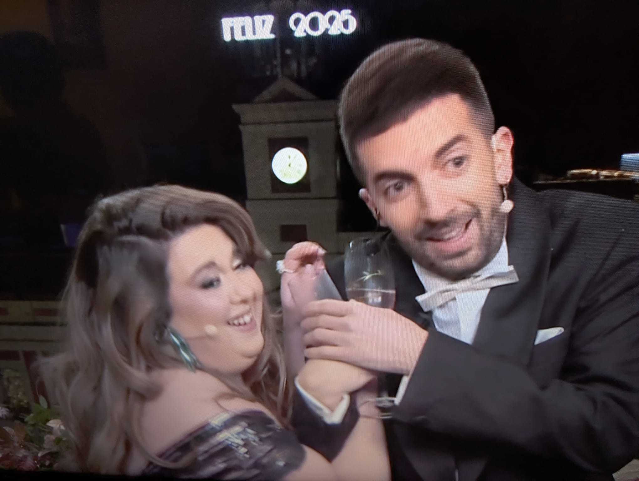 La estrategia de Broncano y Lalachus fue tan simple como efectiva: en lugar de centrarse en el espectáculo visual de un vestido que podría haberse tejido con las lágrimas de un unicornio, decidieron convertir las campanadas en un evento de “risoterapia nacional”. Mientras Pedroche desvelaba su 17º vestido temático, esta vez hecho con su propia leche materna (porque, claro, ¿qué mejor manera de celebrar el año nuevo?), Broncano y Lalachus optaron por subirse al tejado, hablar con el público de la Puerta del Sol y, en un acto de valentía sin precedentes, saludar a sus competidores de Antena 3 desde el balcón vecino.
