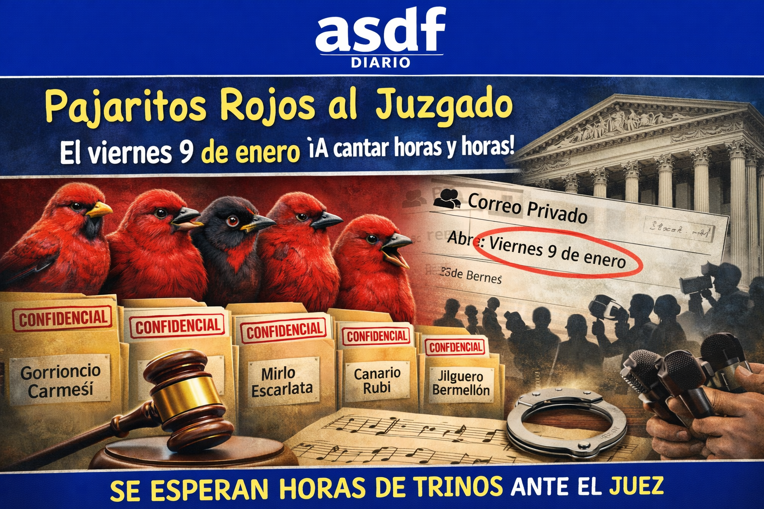 En el Diario ASDF seguiremos atentos a cada trino, cada pausa y cada nota sostenida. Porque si algo ha quedado claro es que, cuando los pajaritos rojos se posan frente a un micrófono judicial, el silencio nunca es una opción.